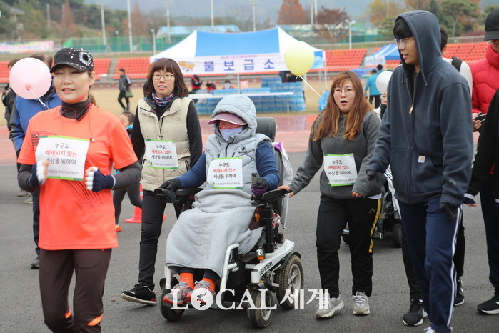 [로컬세계 김경락 기자]18일 고창공설운동장 일원에서 열린 제16회 고창 고인돌 마라톤대회에 한 장애인이 참가해 누구도 배제되지 않는 세상을 위해 달리고 있다.