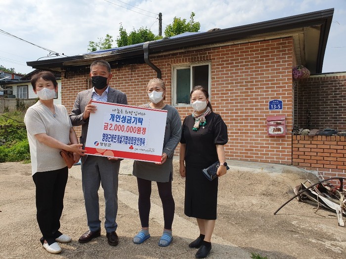 이번 성금은 영양군바르게살기협의회에서 올해 청기면과 입암면의 취약계층 각 1가구씩 선정하여 집수리 지원사업을 추진하던 중, 안형욱 회장은 입암면에 화재로 인해 어려움을 겪고 있는 이웃주민이 있으나, 이미 선정된 가구가 있어 지원이 불가하다는 소식을 듣고, 피해주민에 대한 안타까운 마음에 개인 사비로 지원하게 되었다.