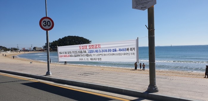 구는 벡스코 앞, 해운대해수욕장, 구남로 등 관내 20곳의 다중집합장소에 이를 알리는 현수막을 게첨했다.