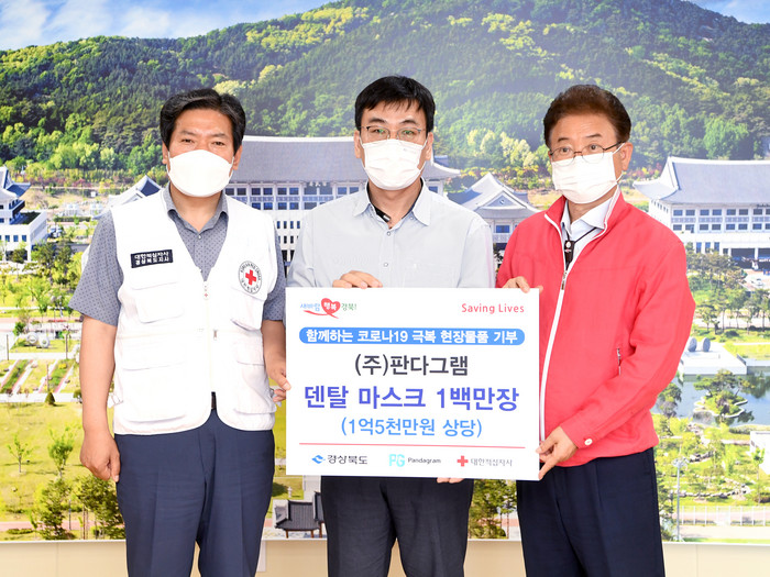 [로컬세계 이창재 기자]㈜판다그램(대표 안병철)이 지역의 코로나19 극복을 위해 사용해 달라며 8일 덴탈마스크 1백만장을 경북도에 기부했다.