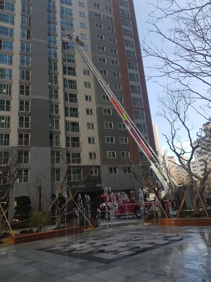 이번 현장 방문은 소방전문지식인 이중희 소방기술사(금정이앤지)가 동행해 고층 건축물에 대한 대응능력 강화를 위해 신축되는 대형 완공검사에 맞춰 스프링클러 설비 등 소방시설과 소방차 진입로와 고가사다리차 전개훈련 등 소방대원들의 현장대응 능력을 높였다..