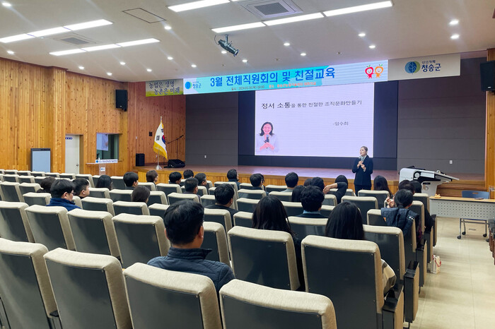 [로컬세계 = 이창재 기자] 경북 청송군농업기술센터는 지난달 28일 오전 9시 농업기술센터 대회의실에서 전 직원을 대상으로 직원 역량강화 및 친절교육을 실시했다.