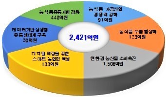 또 통합마케팅을 통한 농산물 유통구조 개선, 생산자 조직화ᐧ규모화 촉진, 공영도매시장 시설현대화 등 농식품 유통기반 강화에도 448억원을 투자해 유통기반을 강화해 나간다.