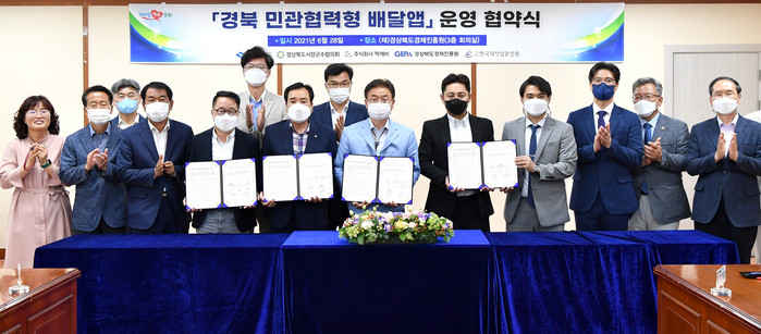 [로컬세계 이창재 기자] 경북도는 중개수수료 1.5%의 경북 공공배달앱 출시를 앞두고 28일 경북도 경제진흥원 소회의실에서 관계 기관·단체장이 참석해 ‘경북 민관협력형 배달앱’업무 협약을 체결했다.