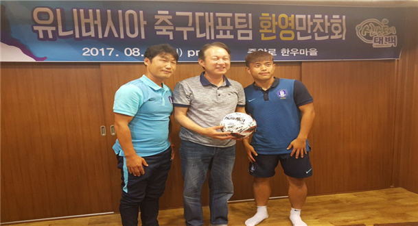 김연식 태백시장은 유니버시아드 대표팀(감독 이장관)의 전지훈련을 환영하는 자리에서 “앞으로도 태백시는 대학축구 발전과 태백시 축구 저변 확대를 위해 관심과 지원을 아끼지 않을 것”이라며 하계 유니버시아드 축구 대표팀의 건승을 기원했다.