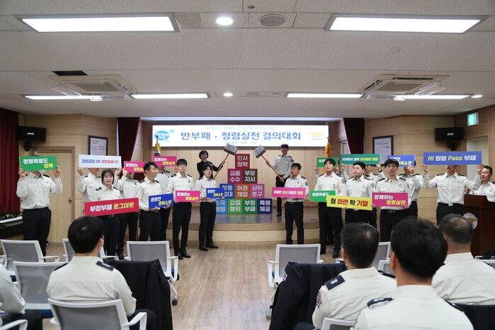 안동소방서는 청렴한 조직문화 조성을 위하여 부패 척결 퍼포먼스를 함으로써 청렴 실천 의지를 다졌으며, 이어 산불정책 기술연구소 황정석 박사를 외부강사로 초빙해 산불대응 전문성 향상을 주제로 직무교육을 실시했다.