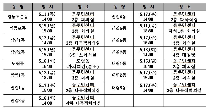 ▲찾동 주민참여지원사업 동별 주민설명회 일정. |