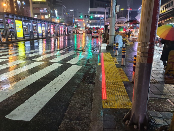 [로컬세계 맹화찬 기자]부산 북구(구청장 정명희)는 최근 구포시장 앞 횡단보도에 ‘LED 바닥형 보행신호등'을 설치했다고 밝혔다.