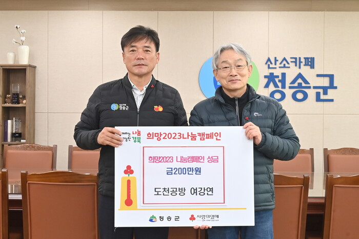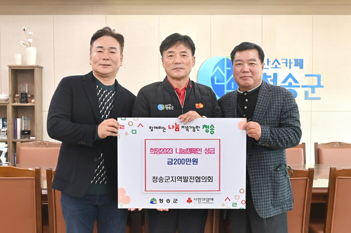 전달식에 참석한 후원자들은 "함께하는 나눔 지속가능한 청송! 희망2023 나눔캠페인 참여로 청송군의 어려운 분들에게 도움을 줄 수 있어서 매우 뜻깊게 생각한다"며 "앞으로도 우리 주변의 어려운 분들을 위한 나눔 활동을 꾸준히 이어가겠다"고 말했다.