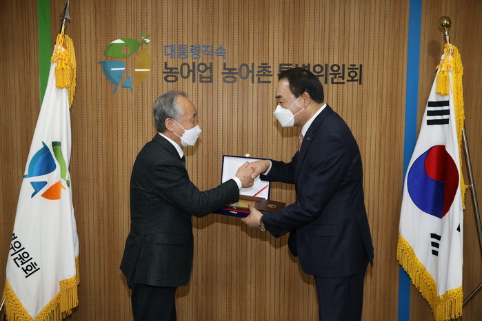 15일 서울 종로구 농특위 위원장실에서 열린 감사패 전달식에서 임 회장은 정현찬 농특위 위원장으로부터 직접 감사패를 전달 받으며 “어업인 권익 증진과 지속 가능한 어촌사회 구현을 위해 농특위에서 마련된 정책들이 현장에 잘 정착해 나가도록 긴밀히 협조해 나가겠다”고 감사의 뜻을 전했다.