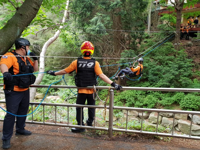 이로 인한 산악사고 증가를 대비해 실족, 조난, 고립 등 산악에서 일어날 수 있는 다양한 상황을 가정해 인명구조훈련을 실시하였고, 주요 훈련내용은 ▲다양한 상황부여와 해결방법 도출 ▲수평·수직 구조 4~5인 조법, 도하훈련 ▲ 요구조자 구조 및 들것 결착 ▲응급처치 및 이송훈련 ▲모바일앱을 활용한 요구조자 위치파악 등이다.
