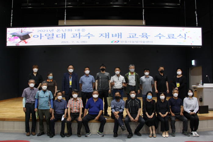 [로컬세계 이창재 기자]경북 안동시농업기술센터(소장 류종숙)가 기후변화에 선제적 대응을 통한 과수 산업의 신(新)성장 동력을 확보하기 위해 지난 4월부터 7월까지 8회에 걸쳐 실시한 「2021년 온난화 대응 아열대 과수 재배 교육」의 수료식을 지난 6일 농업기술센터 종합교육관 대강당에서 개최했다.
