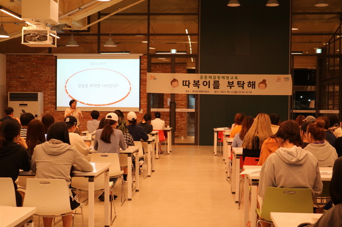 | ▲따복기숙사 입사생들이 공동체함양(공동체 갈등예방)프로그램에 참여한 모습. |