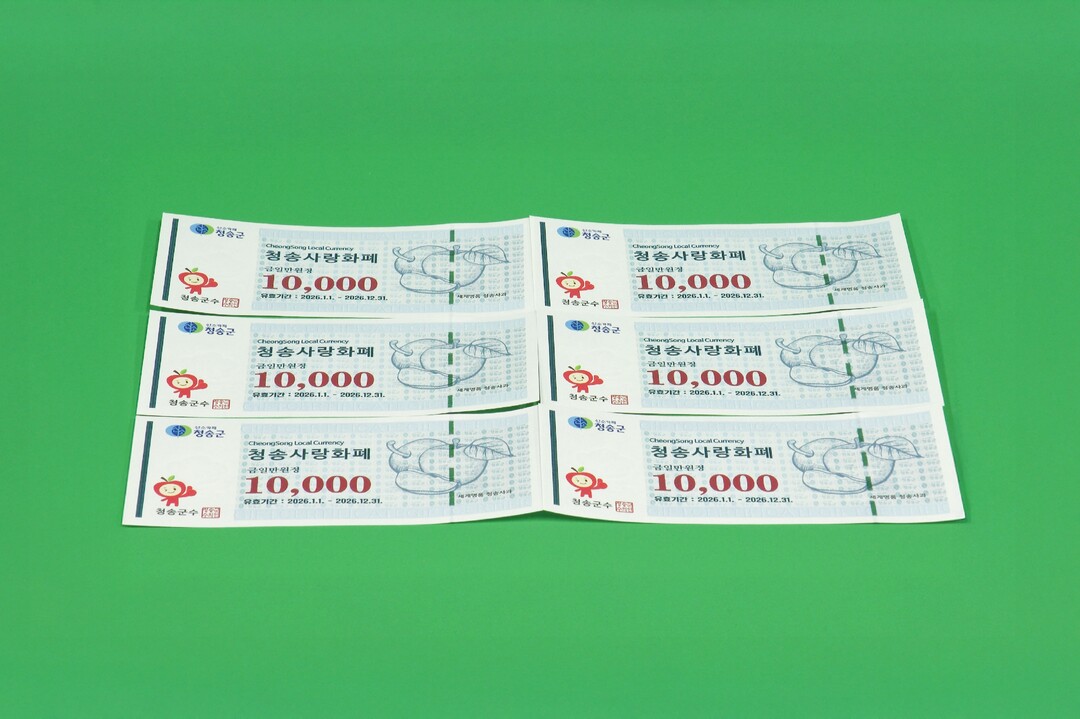군은 2025년 대형산불로 피해를 입은 소상공인의 조속한 회복과 지역경제 재도약을 위해 2026년도 청송사랑화폐를 총 600억 원 규모로 발행하고, 15% 상시 할인율을 적용해 유통할 계획이다. 개인별 구매 한도는 50만 원으로 적용된다.