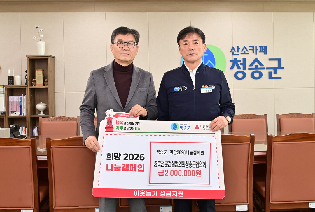청송군 관계자는 “이웃과 함께하는 나눔을 실천해 주셔서 감사드린다.”며, “기탁된 성금은 도움이 필요한 이웃들에게 소중히 전달하겠다.”고 전했다.