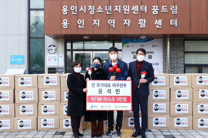 [로컬세계 김병민 기자]‘2008 베이징올림픽’ 야구 국가대표 출신 윤석민 전 선수가 21일 용인지역자활센터에 5000만원 상당의 KF-94 방역용 마스크 5만 400매를 기탁했다.