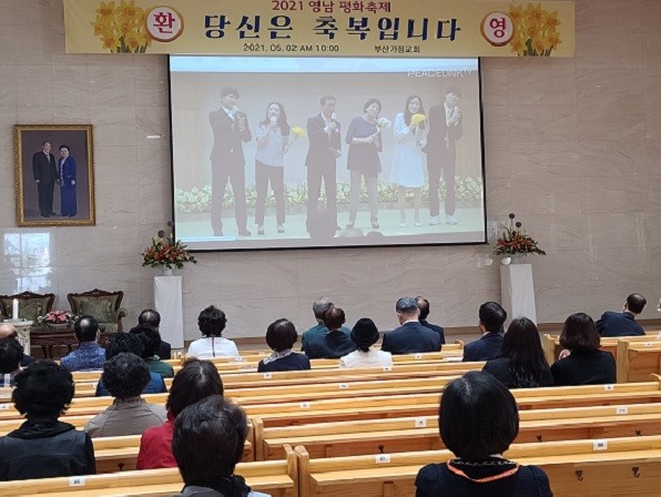 이날 오전 2시간 동안 펼쳐진 평화축제는 코로나19 때문에 피스 링크를 통해 가정연합 영남지구본부와 본부 산하 64개의 교회와 가정에서 비대면 온라인 행사로 진행됐다.
