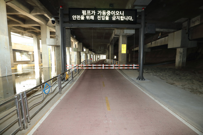 빗물펌프장이 가동되면 자전거 도로 및 산책로 통행제한 경보 및 차단, 통행주민의 안전사고 예방을 위한 CCTV가 주변 감시 기능을 한다.