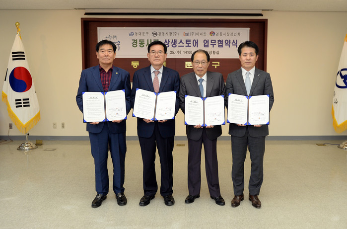 [로컬세계 임종환 기자]서울 동대문구는 25일 오후 2시 구청 기획상황실에서 동대문구, (주)경동시장, (주)이마트, 경동시장상인회 등 4개 기관이 모여 ‘경동시장 상생스토어 업무협약식’을 개최했다고 밝혔다.