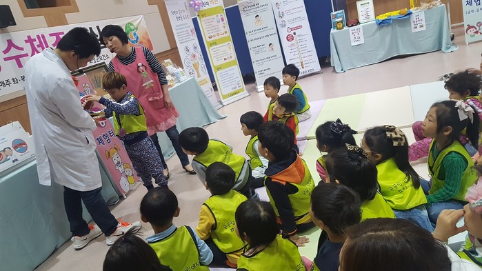 △구강 체험 터 △건강 체험 터 △아토피 체험 터 △손 씻기 체험 터 △영양 체험 터 △신체활동 진행 △나를 사랑하는 정신건강 등 7개의 영역으로 집중식 교육과 시청각 교육, 만들기 체험 등 다양한 방식으로 진행되고 있다.