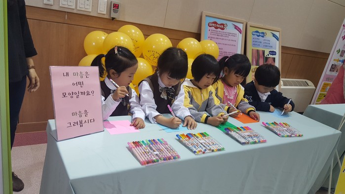 ‘손 씻기 체험 터’에서는 여름철 감염병 예방 위한 첫걸음으로 개인별 올바른 손 씻기 방법을 지도하며, ‘나를 사랑하는 정신건강 교육’으로 스스로의 생각을 직접 그림으로 표현하는 시간도 갖고 있다.