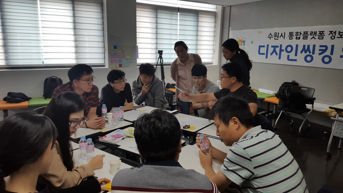 | ▲워크숍 참가자들이 수원시 통합플랫폼에 필요한 공공서비스 모델에 대해 논의하고 있다.(수원시 제공) |