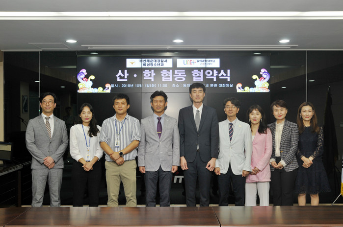 황성현 해운대경찰서 여청과장, 김태훈 동의과학대학과 링크사업단장 등 관계자들이 참석한 이번 협약식에서 양 기관은 해운대 관내 소외된 저소득 노인들을 대상으로 미용 등 봉사활동 및 미용에 관심이 많은 학교 밖 청소년 대상 진로체험의 기회를 제공하기로 했다.
