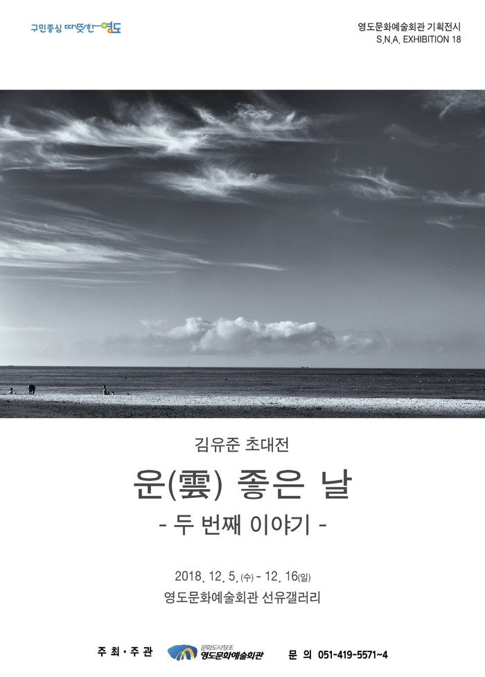 [로컬세계 맹화찬 기자]영도문화예술회관은 이달 5~22일 선유갤러리에서 사진작가 김유준 초대전 ‘운(雲’) 좋은 날’을 개최한다고 3일 밝혔다.