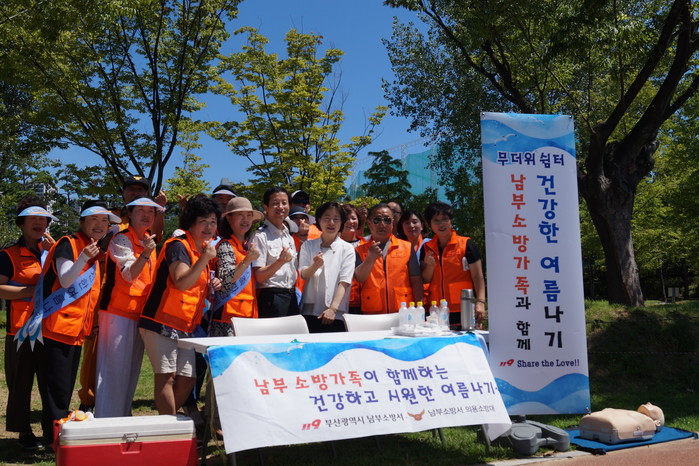 [로컬세계 맹화찬 기자]부산 남부소방서(서장 강호정)에서는 연일 계속되는 불볕 더위에 지친 시민들에게 온열질환자 발생대비 119사랑 나눔을 실천하고 있다.