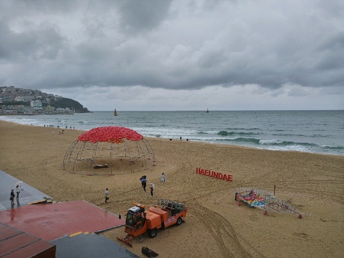 | ▲태풍이 오기 전 해운대 돔 설치 모습. |