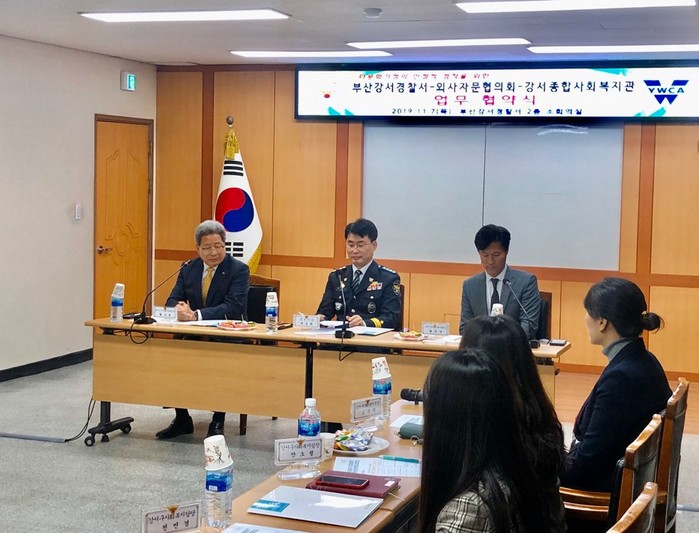 [로컬세계 맹화찬 기자]부산강서경찰서(서장 박중희)는 지난 7일 부산강서경찰서 2층 소회의실에서 부산강서경찰서, 외사자문협의회, 강서구종합사회복지관이 함께 다문화 가정의 안정적 정착을 위한 업무협약을 체결했다.