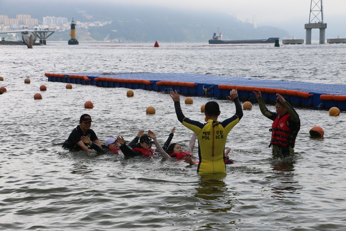가장 뜨거운 관심을 모으고 있는 ‘생존수영’ 교실에서는 울산해양경찰서 직원들이 직접 강사로 나서 ▲물놀이 안전수칙 ▲생존수영 ▲수중호흡법 ▲부력도구 사용법 등을 알려준다.