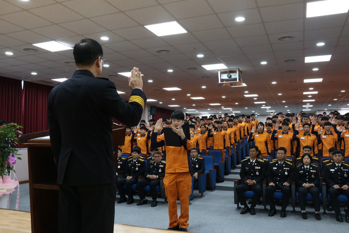 이번 입교식은 교육생 대표의 119 소방강령 낭독과 학교장 입교식사, 교직원 소개 순으로 진행됐다.
