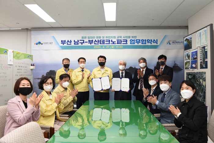 [로컬세계 맹화찬 기자]부산 남구(구청장 박재범)와 재단법인 부산테크노파크(원장 최종열)는 27일 좋은 일자리 창출 및 취업지원 교육 사업을 위한 업무 협약식을 가졌다.
