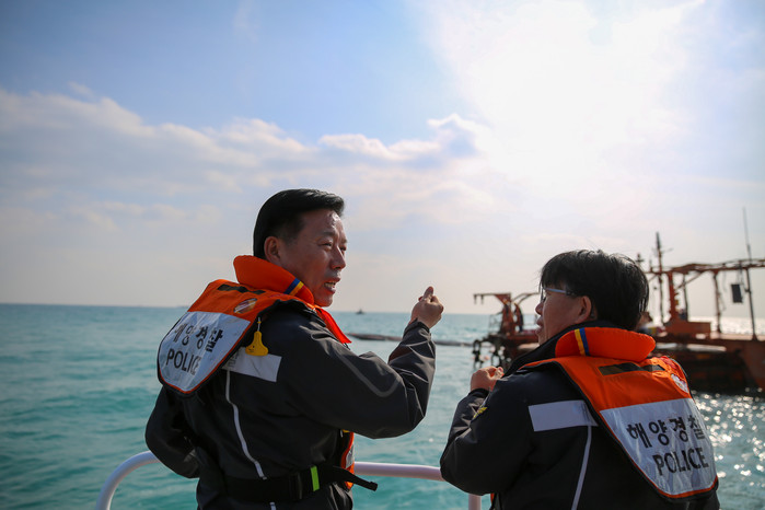 이날 경비함정에 탑승해 사고현장을 살핀 김 청장은 “원유 부이 유출사고의 경우 해양생태계는 물론, 어민들의 생계를 위협하는 대형사고로 번질 수 있다”면서도 “직원들의 헌신적인 노력이 있었기에 조기에 사고를 수습할 수 있었다”며 직원들의 노고를 치하했다.