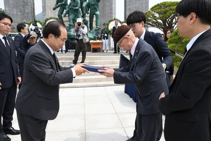 이번 추념식에서 오거돈 부산시장은 6.25참전 국가유공자 최 모(89세) 어르신에게 국가유공자 증서를 수여하고 국가유공자 명패를 전달했다. 어르신은 정부 주도 국가유공자 발굴 사업에서 대상자로 확인되어 6.25참전 국가유공자로 등록했다.