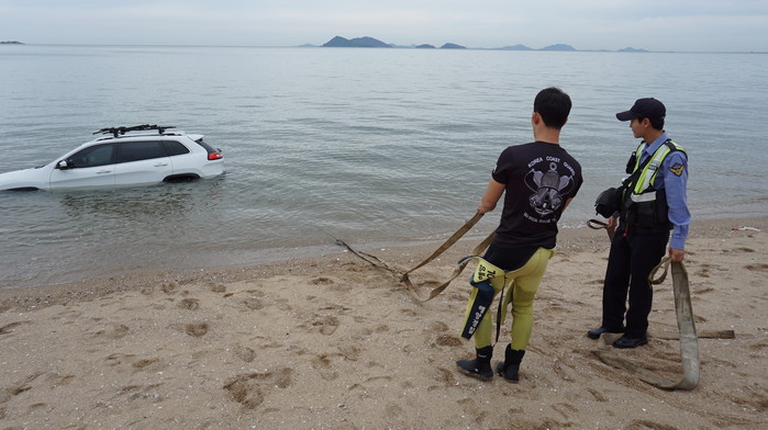 부안해경에 따르면 대전에 거주하는 A모씨(남, 62세) 등 2명은 고사포해변에서 드라이브 중 오후 1시 45분경 차량이 모래사장에 고립되어 밀물에 침수된 것으로 신고를 접수받은 부안해경은 변산파출소 경찰관을 현장에 급파했다.