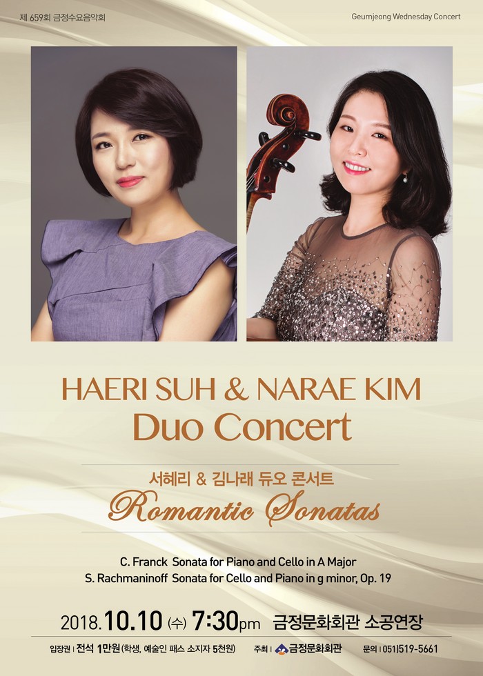 [로컬세계 맹화찬 기자]부산 금정문화회관 수요음악회에서는 오는 10일 피아노와 첼로의 아름다운 선율을 선물하는 서혜리 &김나래의 듀오 콘서트가 열린다고 4일 밝혔다.
