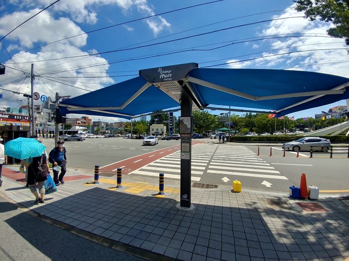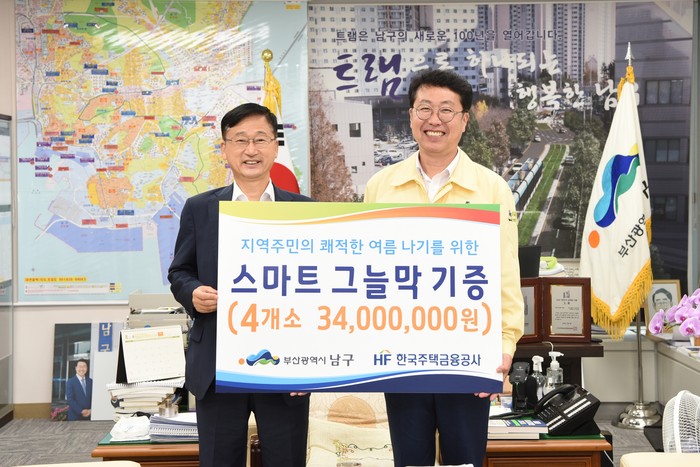 한국주택금융공사(HF)는 지역 주민의 폭염피해를 줄이기 위해 관내 유동인구가 많은 횡단보도 4곳에 스마트 그늘막을 기증했다.