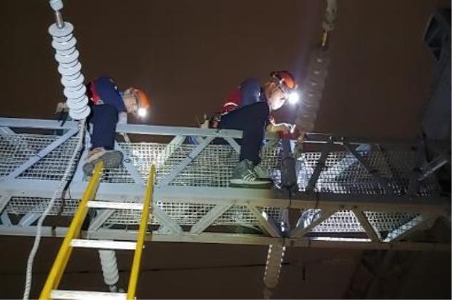 | ▲야간 전차선로 안전점검을 시행하고 있다.(코레일 부산경남본부 제공) |