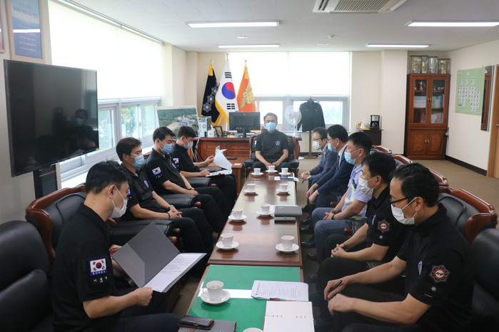 [로컬세계 맹화찬 기자]부산광역시 소방학교(학교장 김재홍)는 30일 소방안전전문교재(제4호) 편찬을 위해 소방학교, 소방서 및 외부전문가로 TF팀을 구성하고 그에 따른 회의를 개최했다.