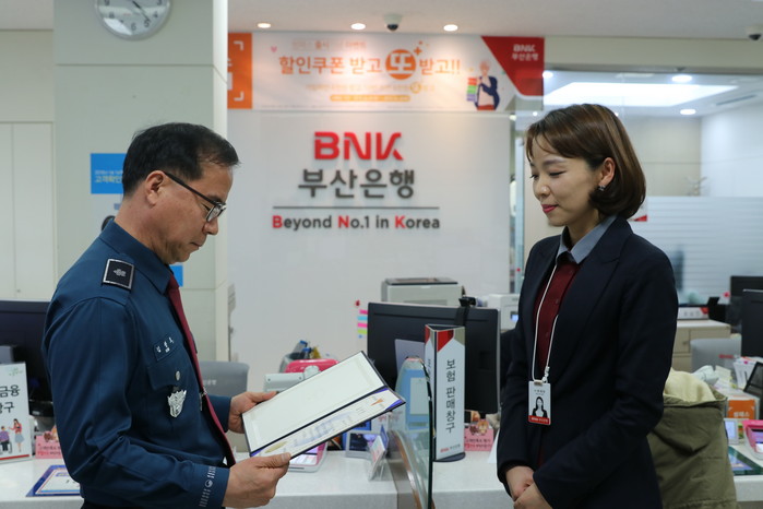 [로컬세계 맹화찬 기자]지난달 31일 보이스피싱에 속아 약 4억 원의 돈을 범죄조직에 이체할뻔한 남성이 부산은행 좌동지점에서 근무하는 한 은행원의 기지로 피해를 막았다.