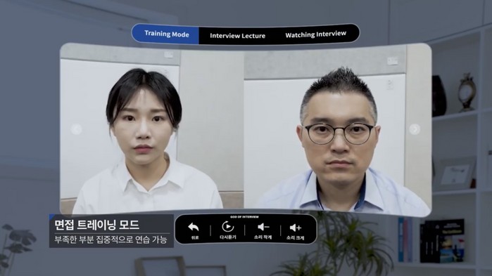 이 밖에도 교육생이 원하는 대로 맞춤형 연습을 할 수 있도록 실제 면접 현장에서 쓰이는 80여개 직무/회사/학과의 1만6000개 질문을 데이터베이스(DB)화하여 교육생의 답변에 따라 AI기능을 적용하여 다음 질문을 한다. 그리고, 교육생은 부족한 부분을 ‘트레이닝 모드’와 ‘녹화영상 다시보기’를 통해 집중해서 반복적으로 연습하여 보완할 수 있다.