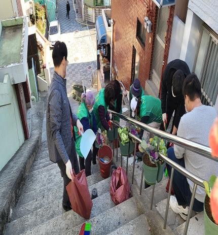 [로컬세계 맹화찬 기자]부산 동구 초량168계단 꽃골목추진위원회와 새마을지도자협의회(회장 이기선), 새마을부녀회(회장 최순희), 통장협의회(회장 정영교) 회원 20여명은 지난 29일, 168계단 및 48계단에 노후된 화분을 정리하고 겨울초화 꽃양배추 300본을 식재했다.