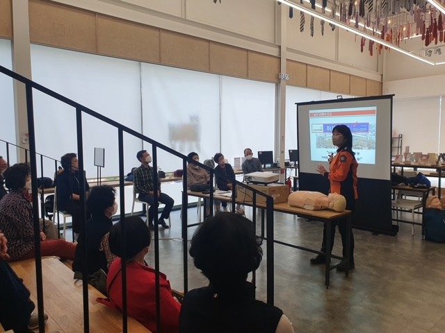 교육내용은 ▲화재 시 안전한 대피 방법▲화재 시 신고요령 ▲심폐소생술 및 내·외과적 응급처치 ▲주택용 소화기·화재경보기 설치 홍보 등 으로 유사 시 유용하게 쓰일 수 있는 교육 내용으로 진행됐다.