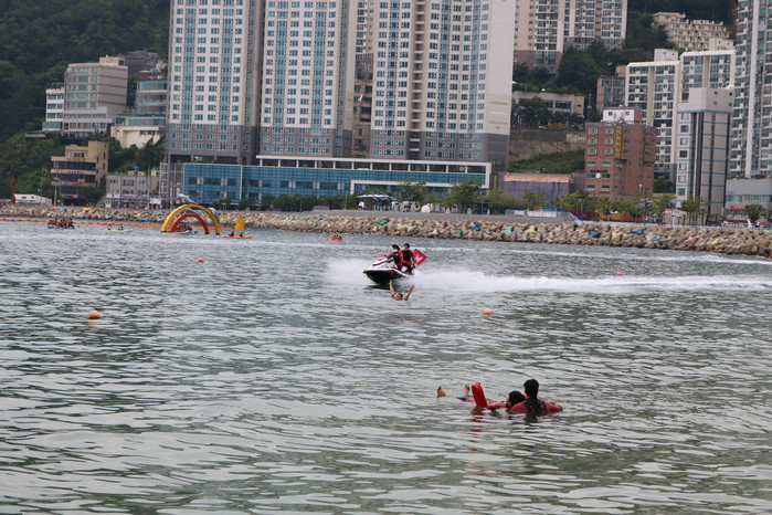 발대식 행사와 더불어 119시민수상구조대에서 고속구조보트, 제트스키를 이용한 수상인명구조 및 익수자 응급처치 훈련을 실시해 송도해수욕장에서 발생할 수 있는 사고대응에 만전을 기했다.