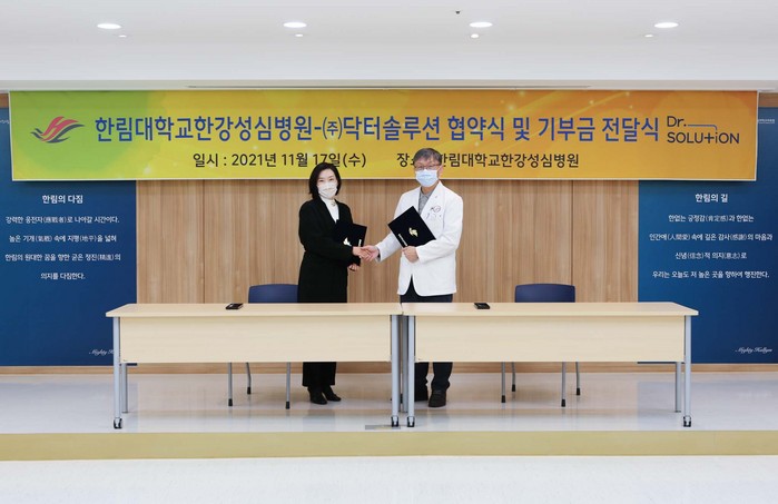 한림대학교한강성심병원과 닥터솔루션은 11월 17일 한림대학교한강성심병원 도헌연구센터 도헌홀에서 윤희성 한림대학교의료원 상임이사, 전욱 한림대한강성심병원장, 김기현 한림대한강성심병원 행정부원장, 오다정 닥터솔루션 대표, 조현제 닥터솔루션 이사 등이 모인 가운데 협약식을 맺었다.