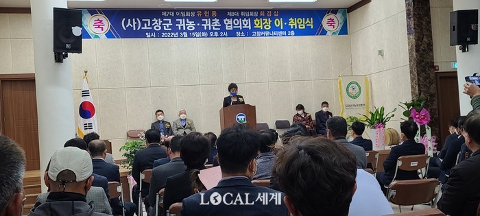 [로컬세계 김경락 기자](사)고창군귀농귀촌협의회는 지난15일 고창커뮤니티센터에서 2층 강당에서 제8대 최경심(61) 회장 취임식을 가졌다.