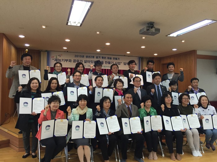 서울 마포구 성산2동 주민센터는 주민자치위원회와 더불어 지난달 29일 ‘재능기부와 공유가 살아있는 마을만들기’ 사업을 위한 업무협약식을 체결했다고 7일 밝혔다.
