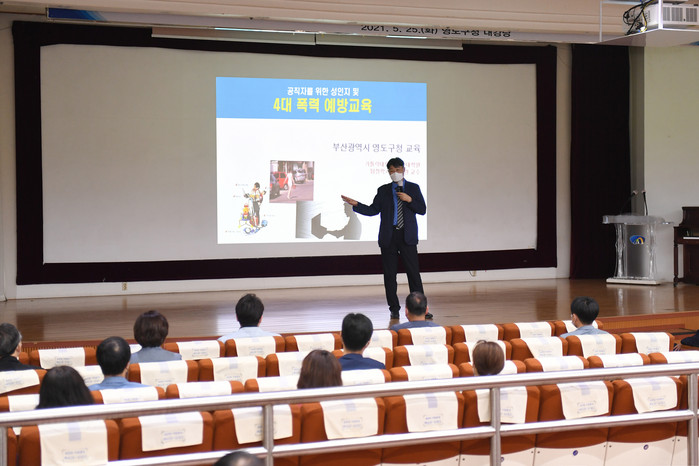 [로컬세계 맹화찬 기자]부산시 영도구(구청장 김철훈)는 지난 25일 구청 대강당에서 직원 130여명을 대상으로 폭력 예방 통합교육을 실시했다.